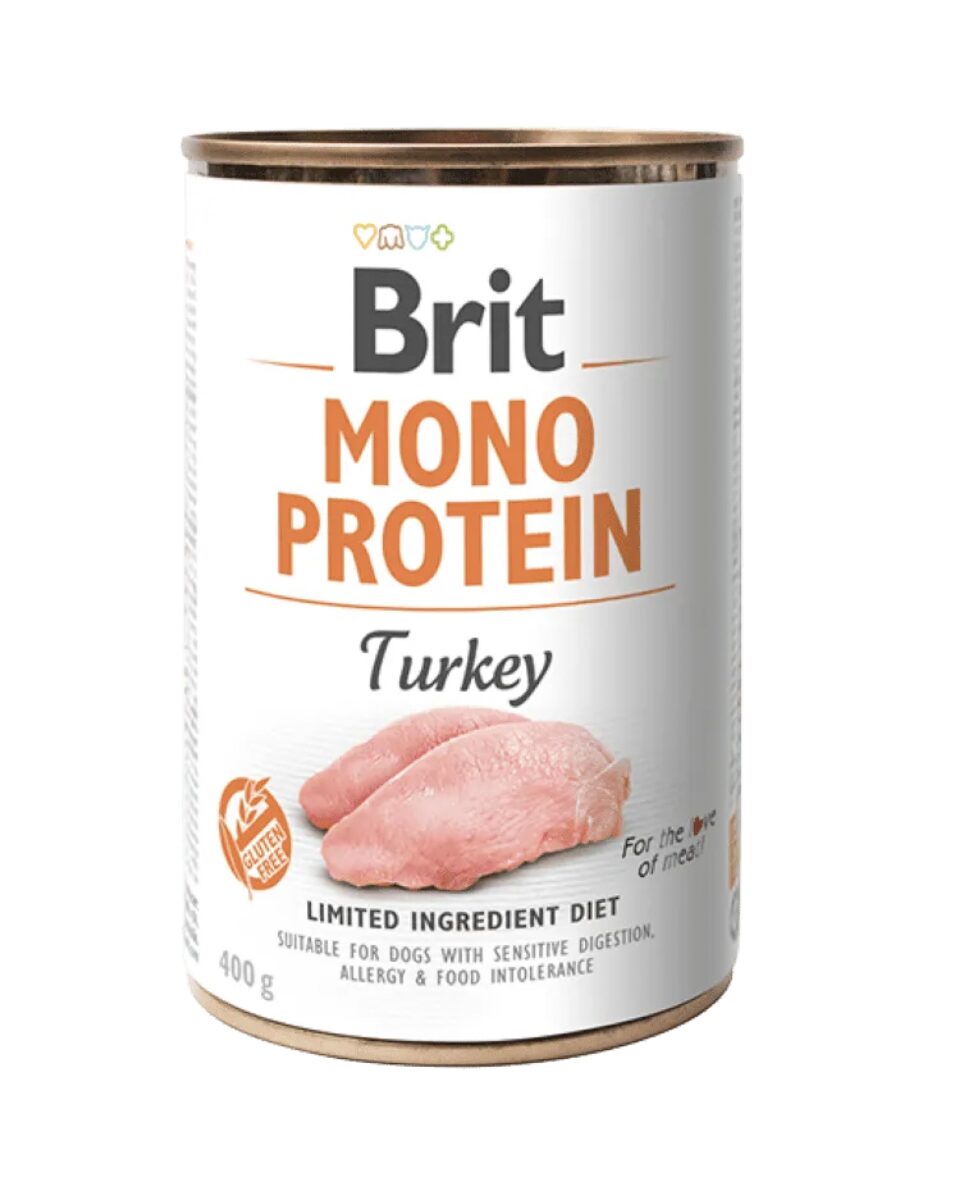 Brit Mono Protein je špeciálne vyvinutý rad jednodruhových mäsových konzerv, ideálny na elimináciu potravinových alergénov. Každá receptúra v tomto rade obsahuje len jeden zdroj živočíšnych bielkovín, vďaka čomu je vhodná pri eliminačných diétach. Potraviny Brit Mono Protein neobsahujú lepok, sóju, GMO a iné problematické zložky. Sú skvelé ako kompletné krmivo a ako chutný doplnok ku granulám.